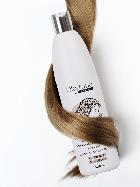Le Shampoing Nourrissant ÔKYTANE pour Cheveux Secs et Abîmés est enrichi en kératine et protéine de soie, deux ingrédients précieux pour renforcer et restructurer les cheveux fragilisés. Sa formule douce sans sulfate et sans silicone nettoie délicatement tout en préservant l’hydratation naturelle de la fibre capillaire.